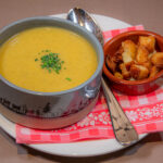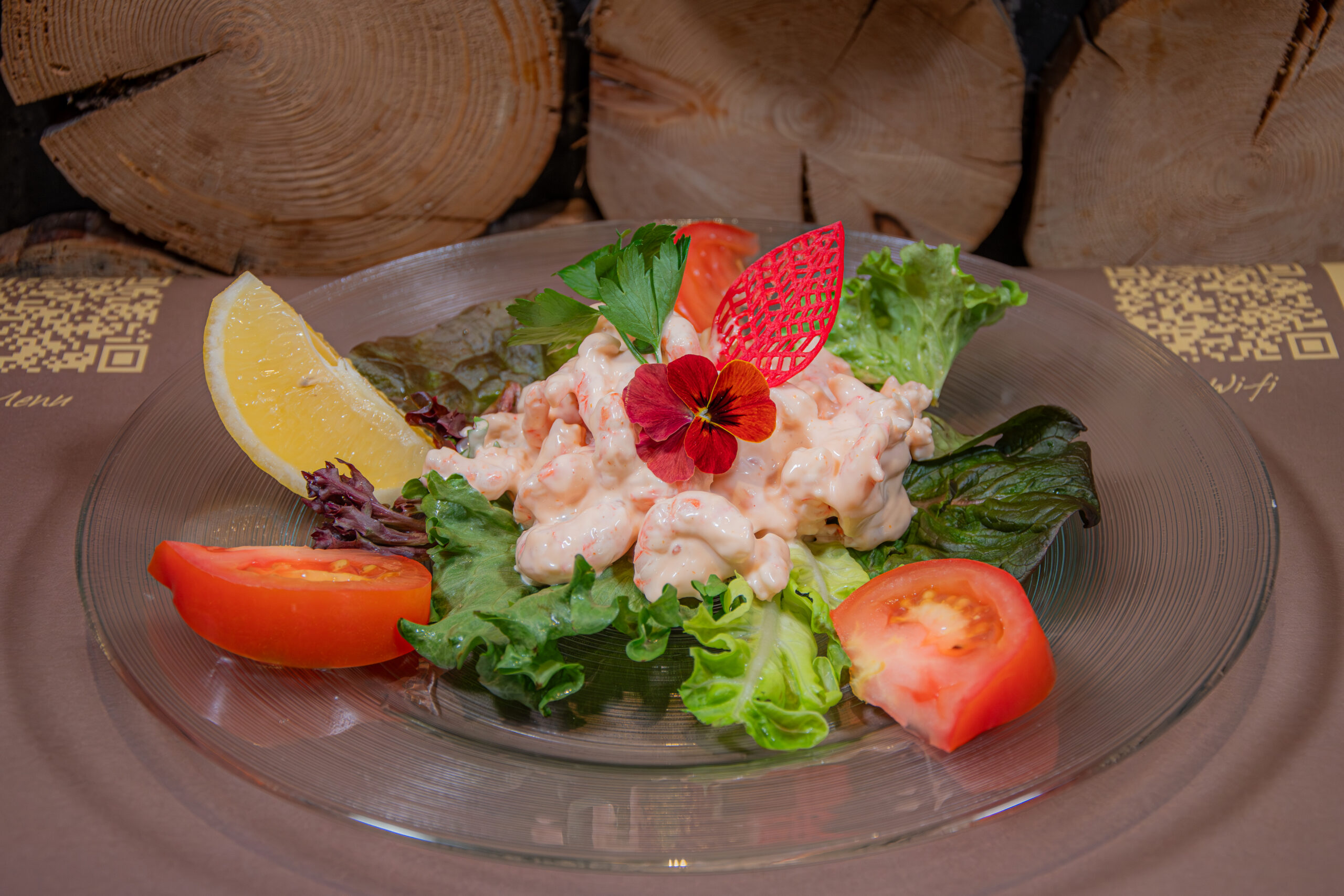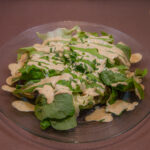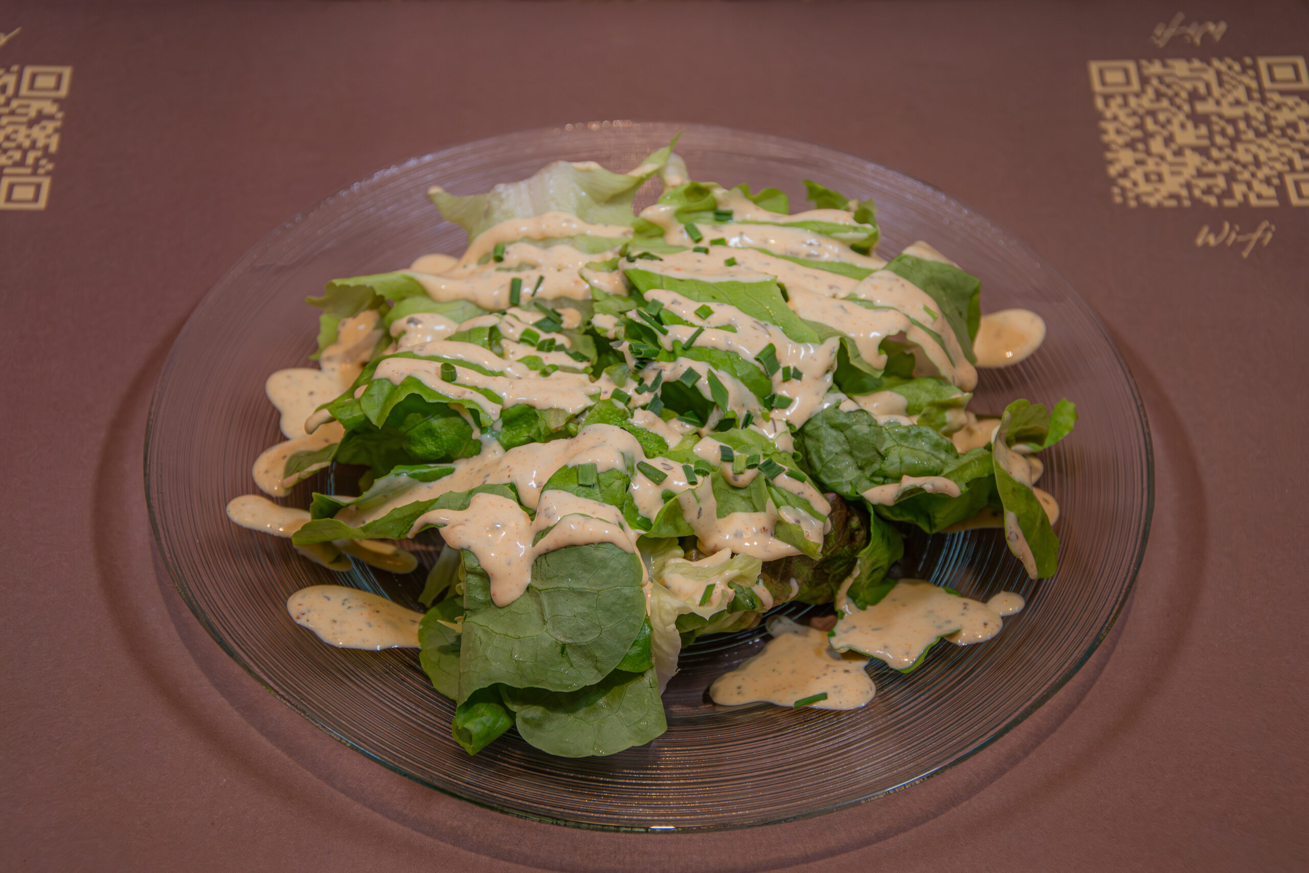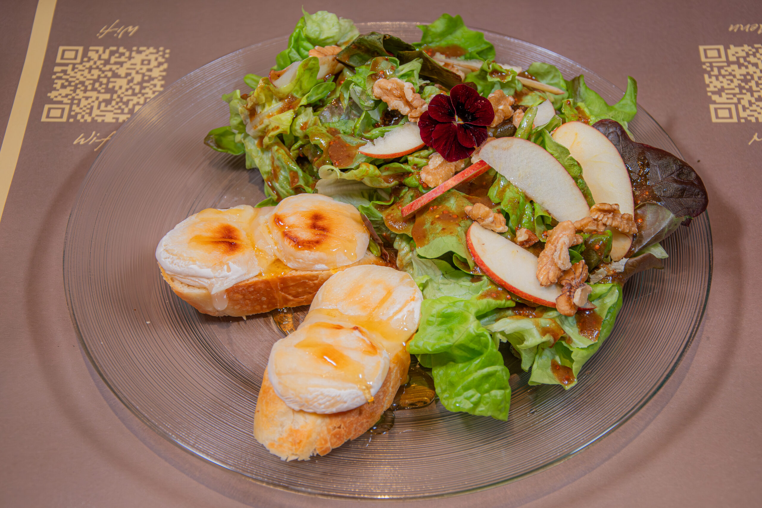 22. -Insalata verde, mela, pane tostato, noci, salsa al miele e senape